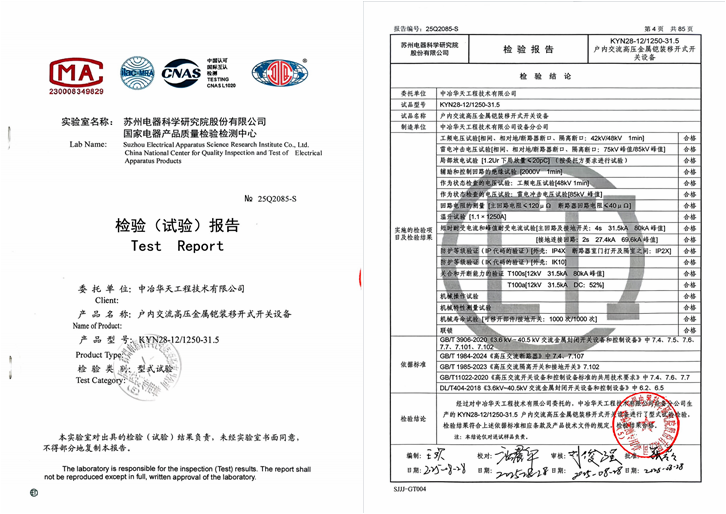 近日,中冶華天收到國家電器產(chǎn)品質量檢驗檢測中心頒發(fā)的戶內交流高壓金屬鎧裝移開式開關設備檢驗報告。該報告確認了由中冶華天設備分公司制作的該類型高壓電氣設備各項性能指標符合國家標準與技術規(guī)范,標志著公司成功取得該類型高壓開關設備的制作資質,為拓展自主裝備制造業(yè)務提供有力支撐。